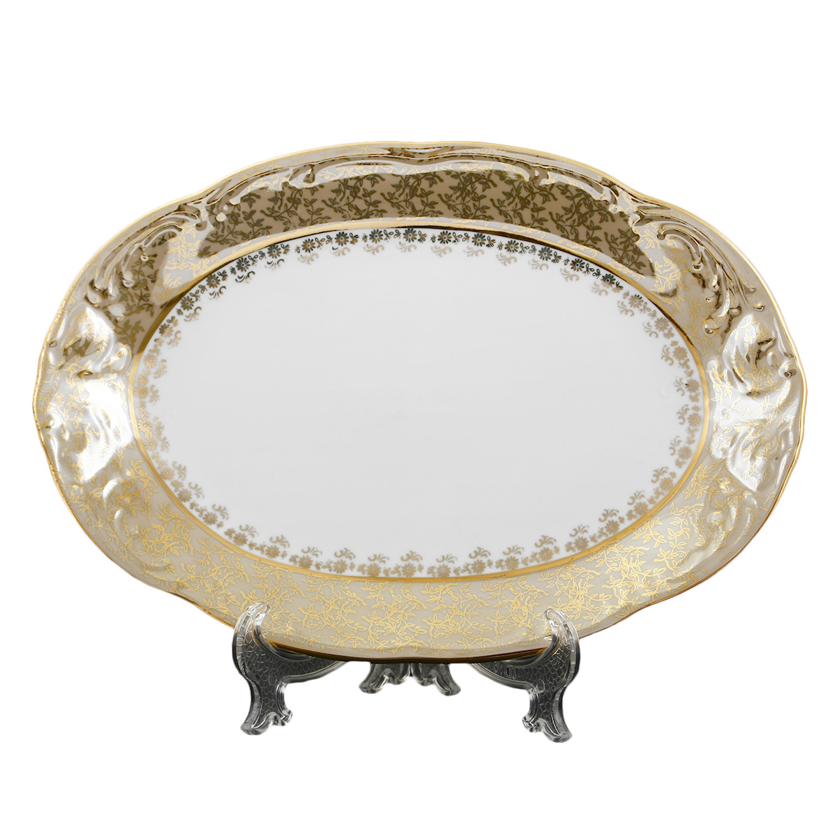 Блюдо овальное 1шт Фредерика Бежевый лист