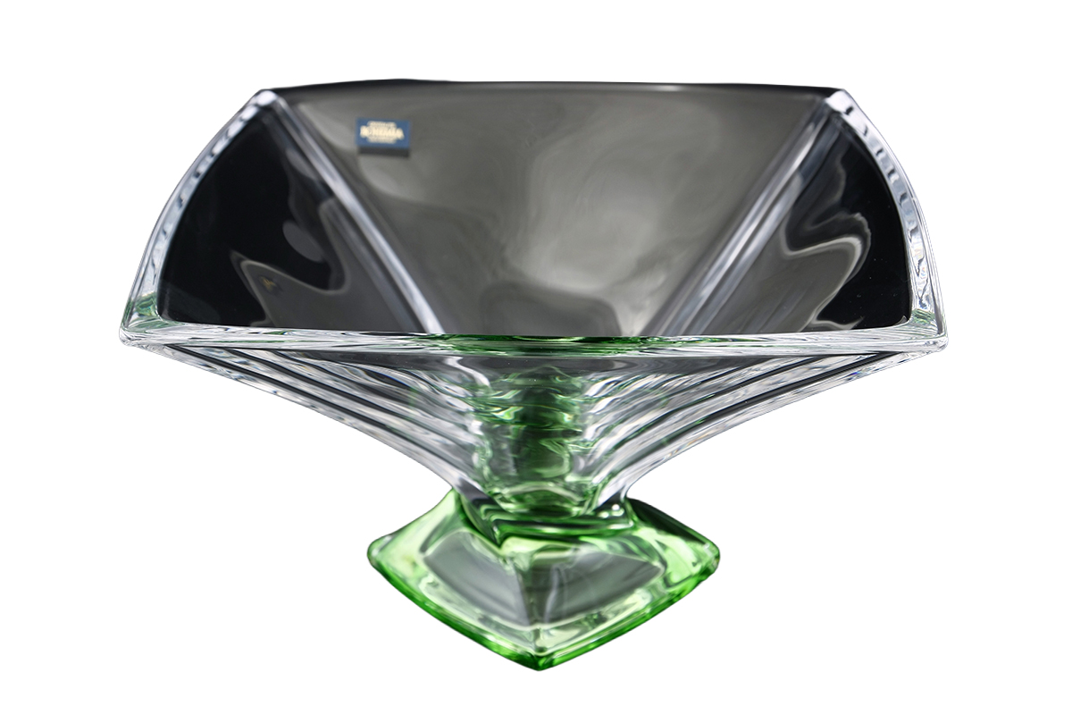 Фруктовница 32,5см Quadro зеленая ножка Crystalite Bohemia
