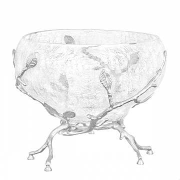 Фруктовница 19,5*19,5*16см круглая малая Серебро Белый обгез Taj Glass, артикул 62833