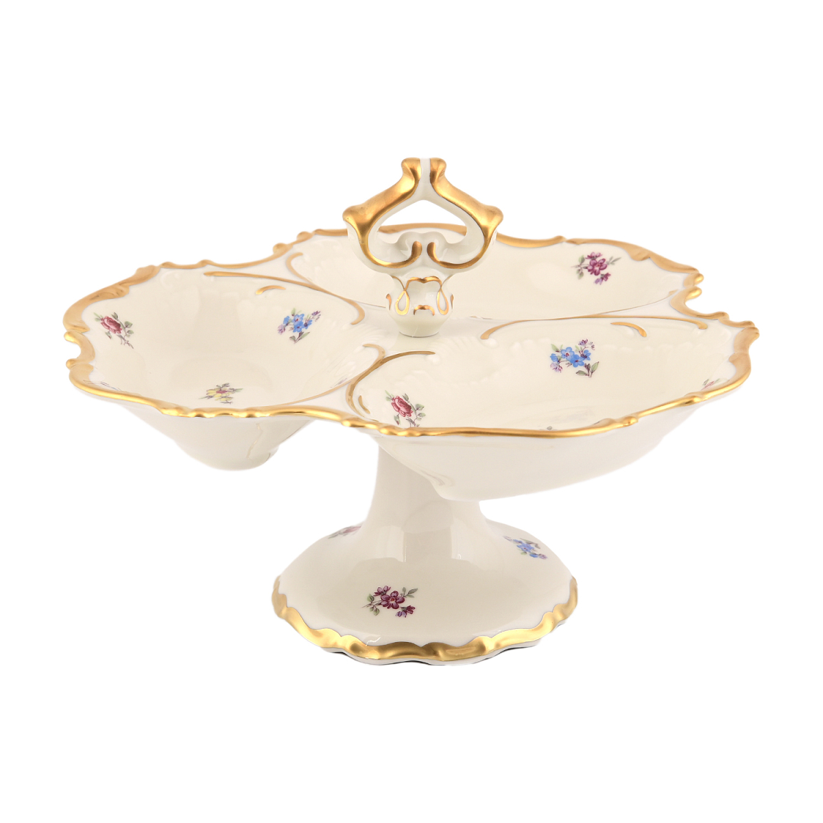 Кабаретница 24см 3 секции на ножке Мейсенский цветок Слоновая кость Аристократ