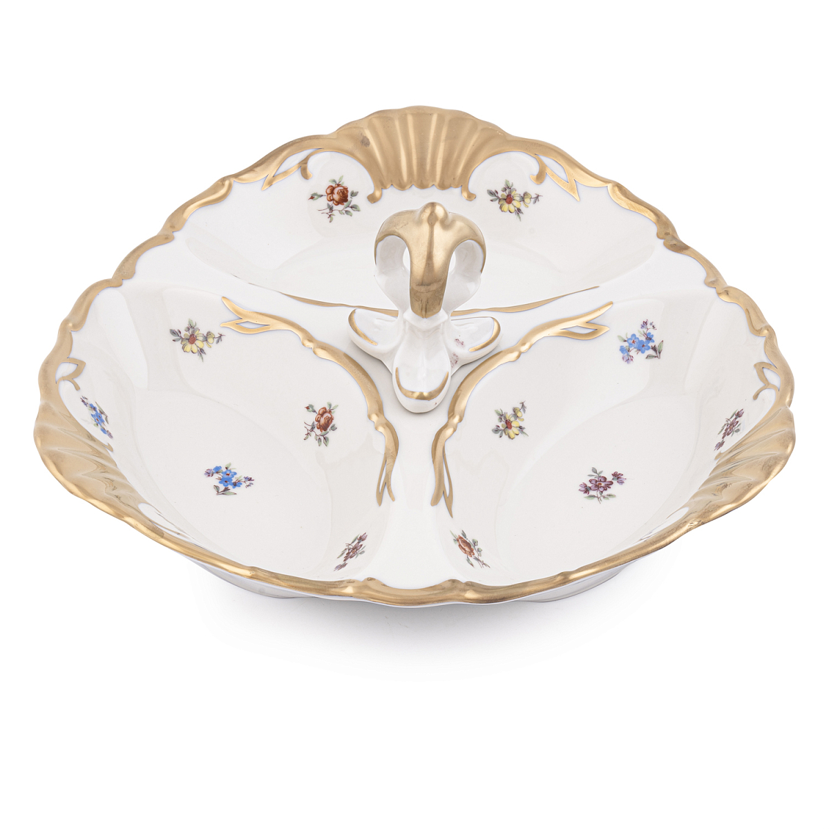 Кабаретница 26см 3 секции Мейсенский цветок слоновая кость Аристократ Queen's Crown