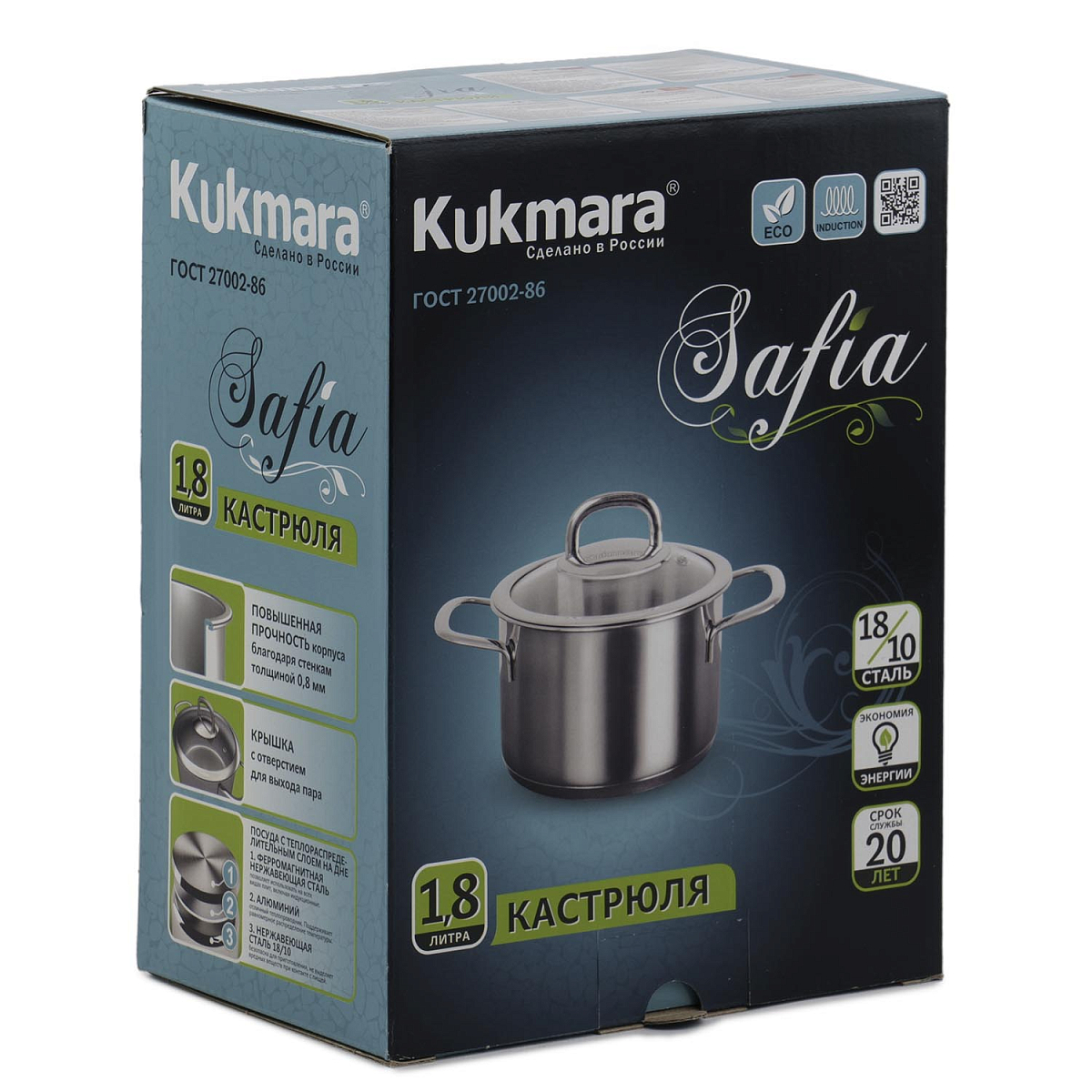 Кастрюля 1,8л 16см со стекл. крышкой Safia