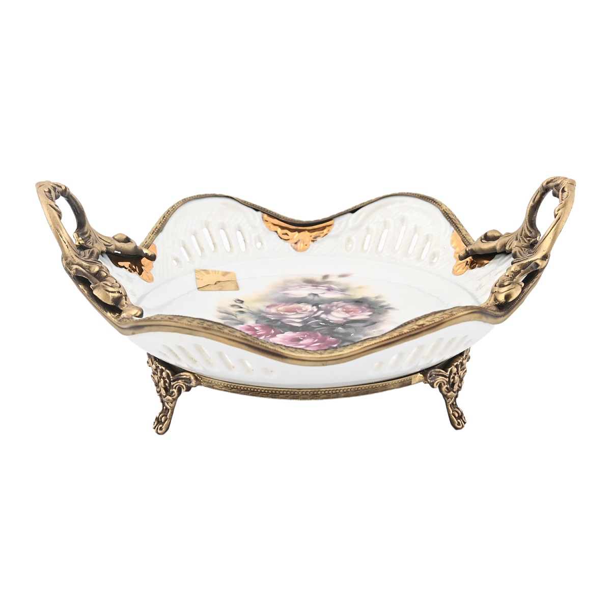 Конфетница на ножках бронза 27*21*9см с ручками Розы Paniz