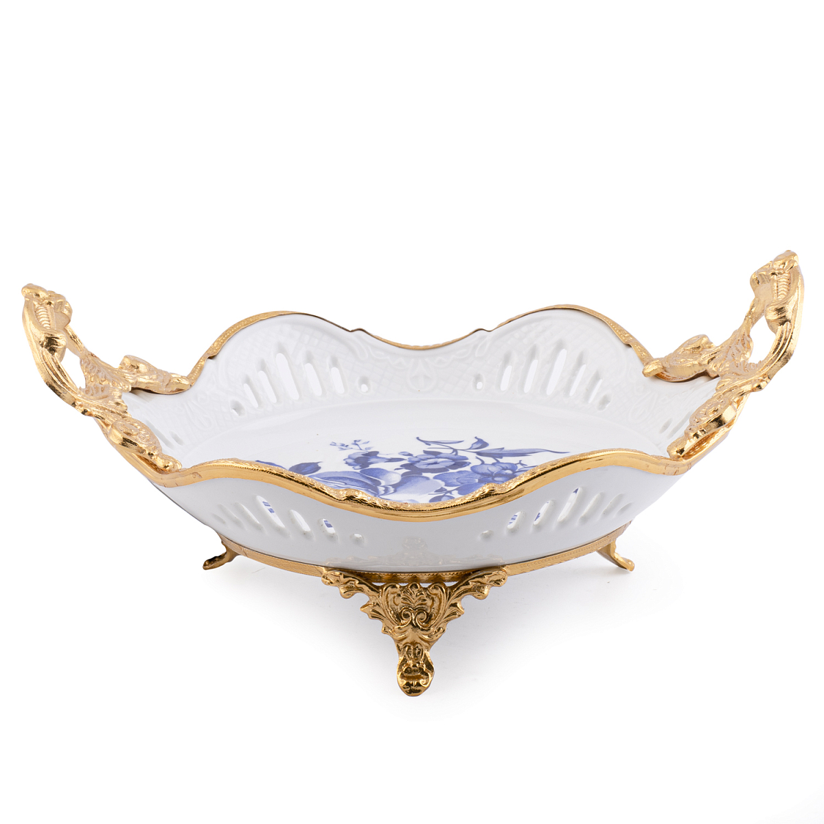 Конфетница на ножках 28*23*17см с ручками Синие розы Paniz