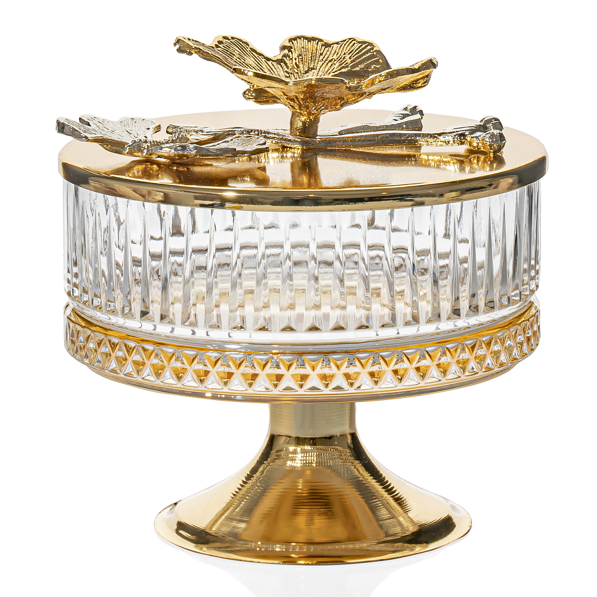 Конфетница на ножке с крышкой Бабочки, медовая