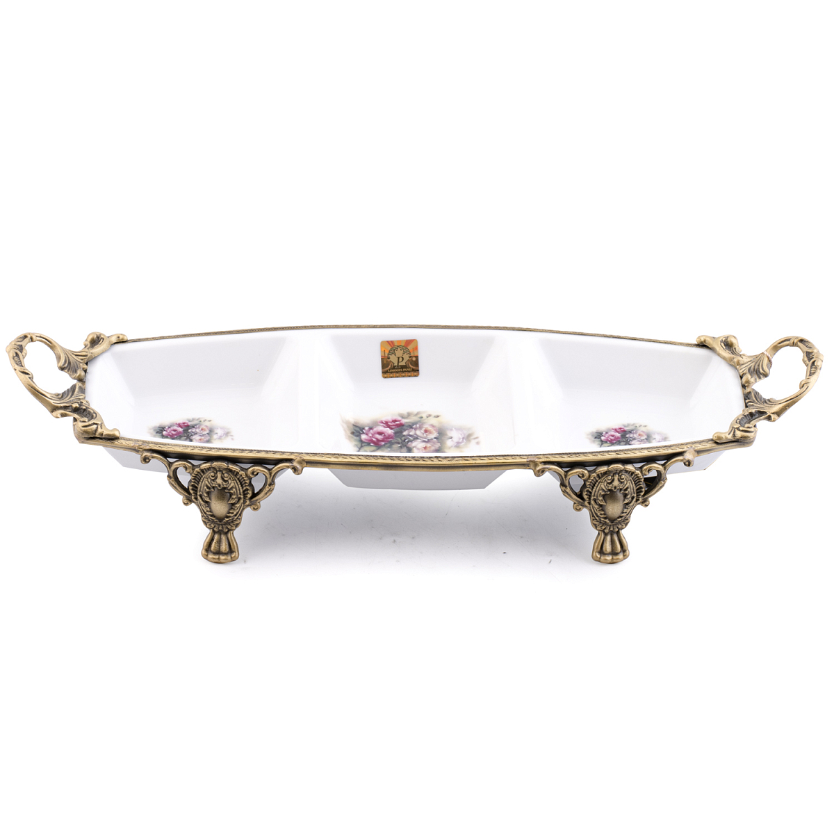 Менажница на ножках бронза 42,5*14*8см с ручками Розы Paniz, артикул 56817