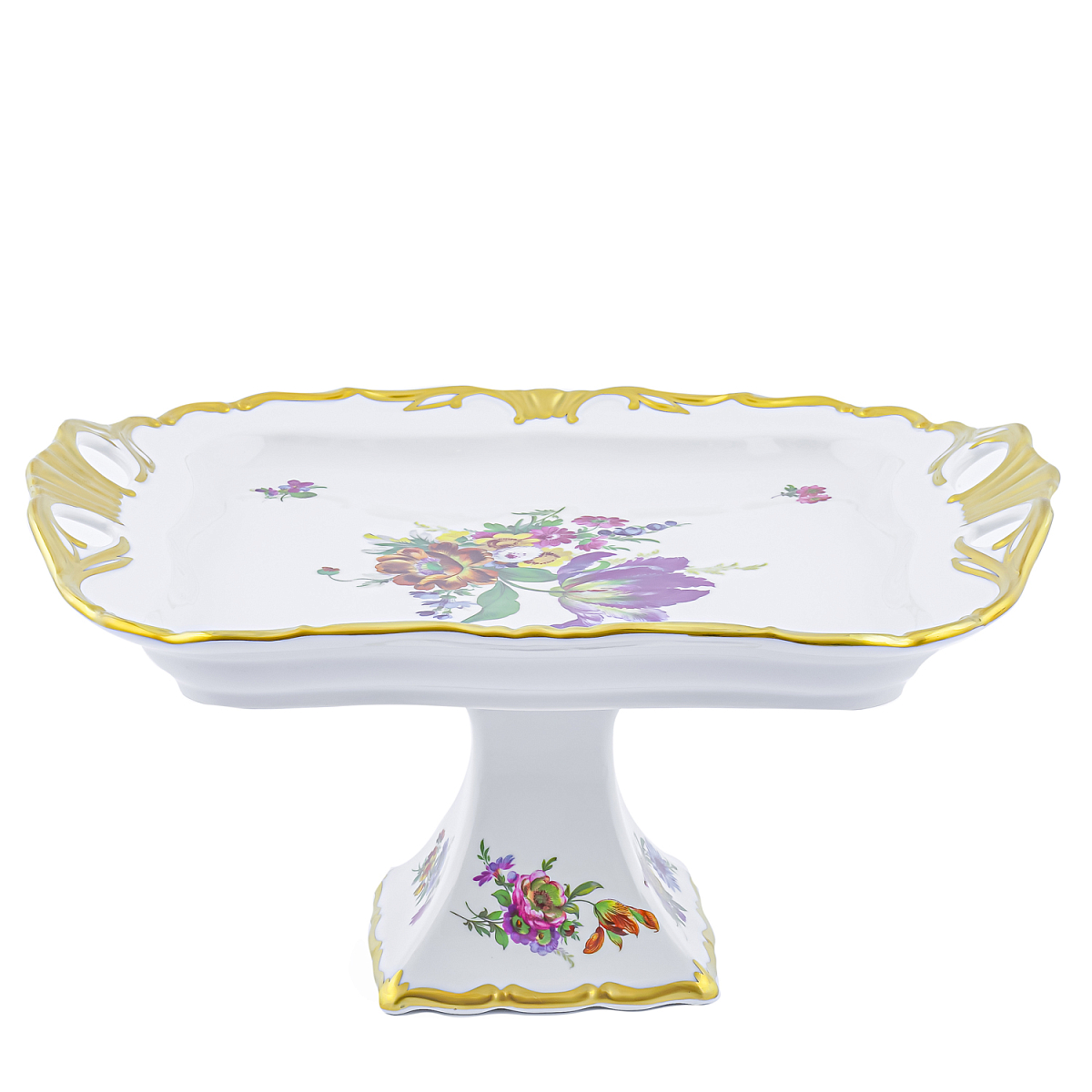 Поднос 30*25см на ножке (белый цветок) 1шт Мейсенский букет