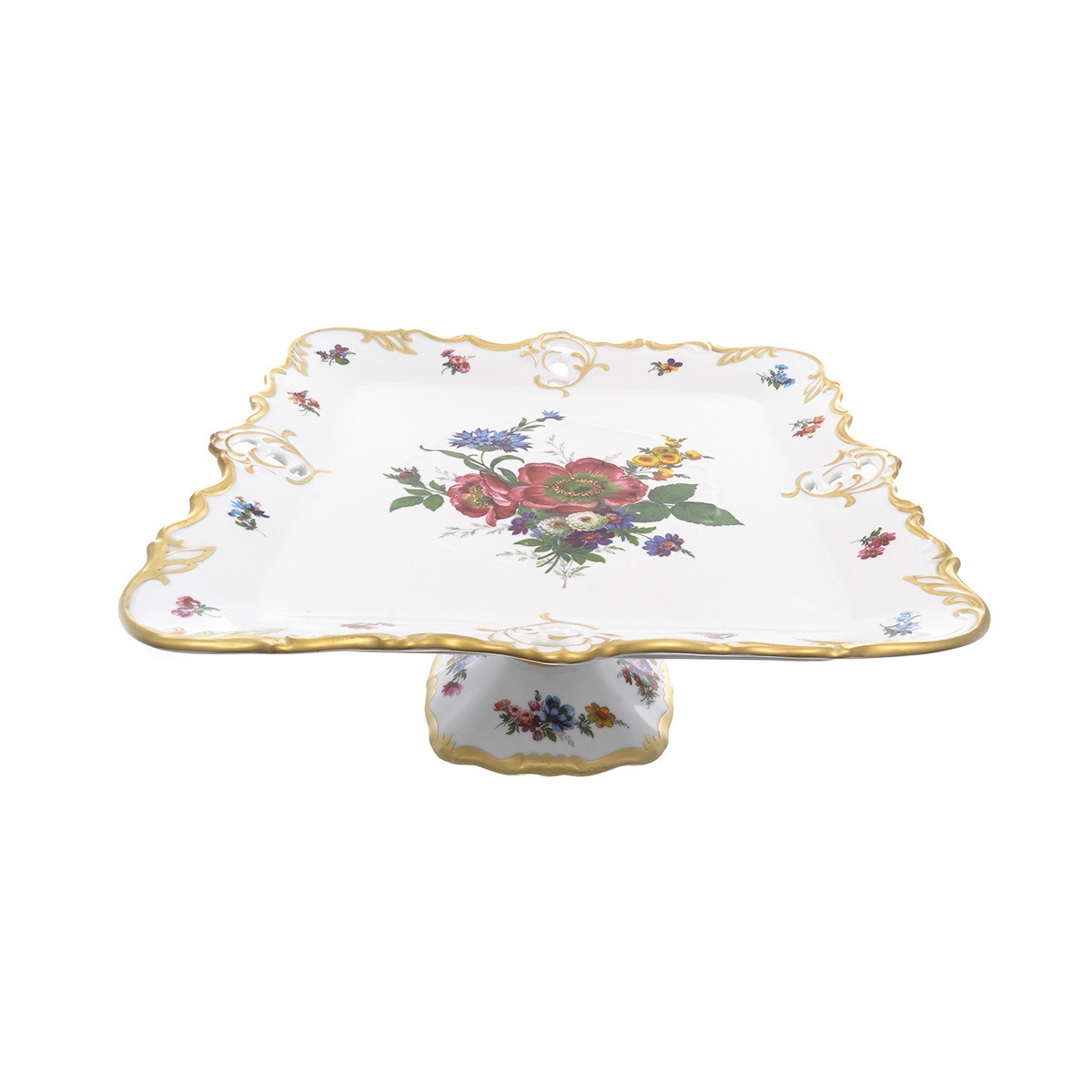 Поднос 32*32см с ручками на ножке 1шт Мейсенский букет, артикул 57474