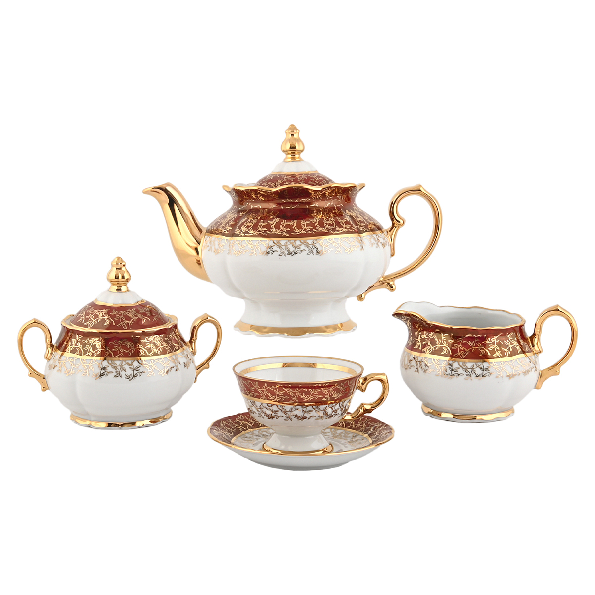 Сервиз чайный 6пер 15пр Красный лист Queen's Crown, артикул 61594