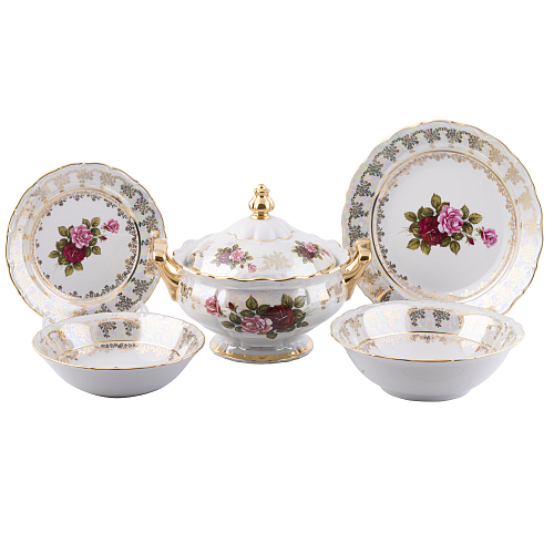 Сервиз столовый 6пер 26пр с супником с салатниками без масленки Аристократ Роза, артикул 54092
