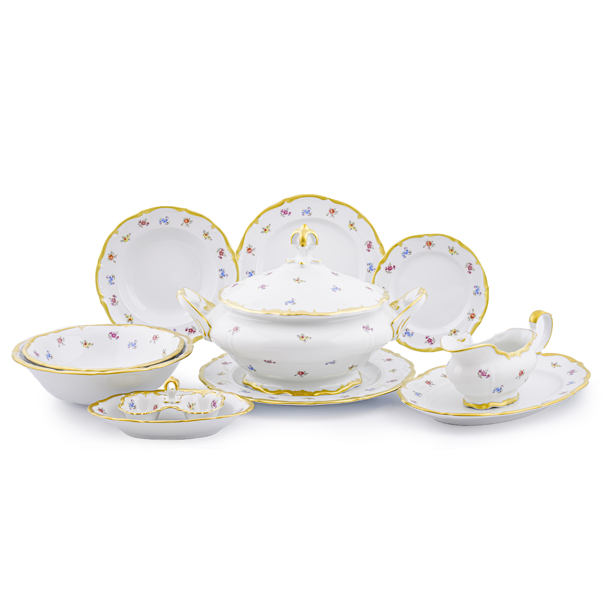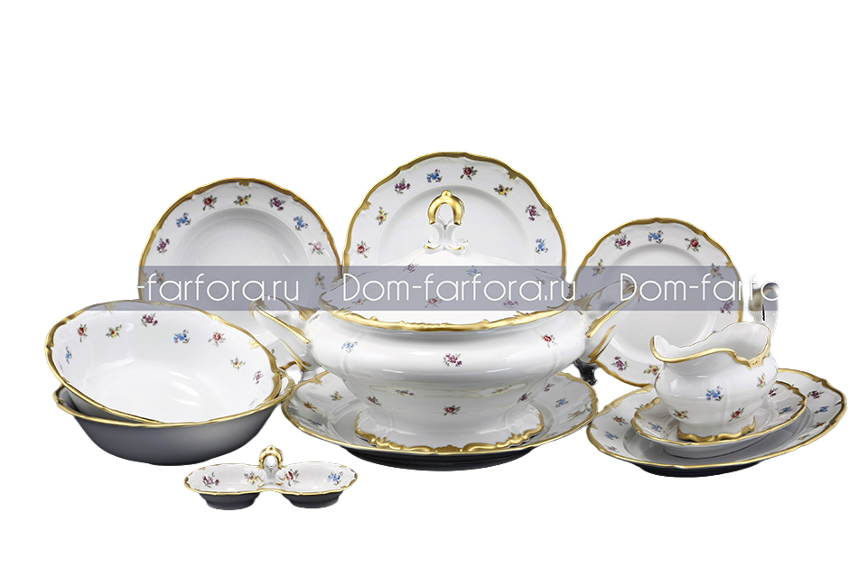 Сервиз столовый 6пер 27пр с супником с тарелками с масленкой Мейсенский цветок Queen's Crown