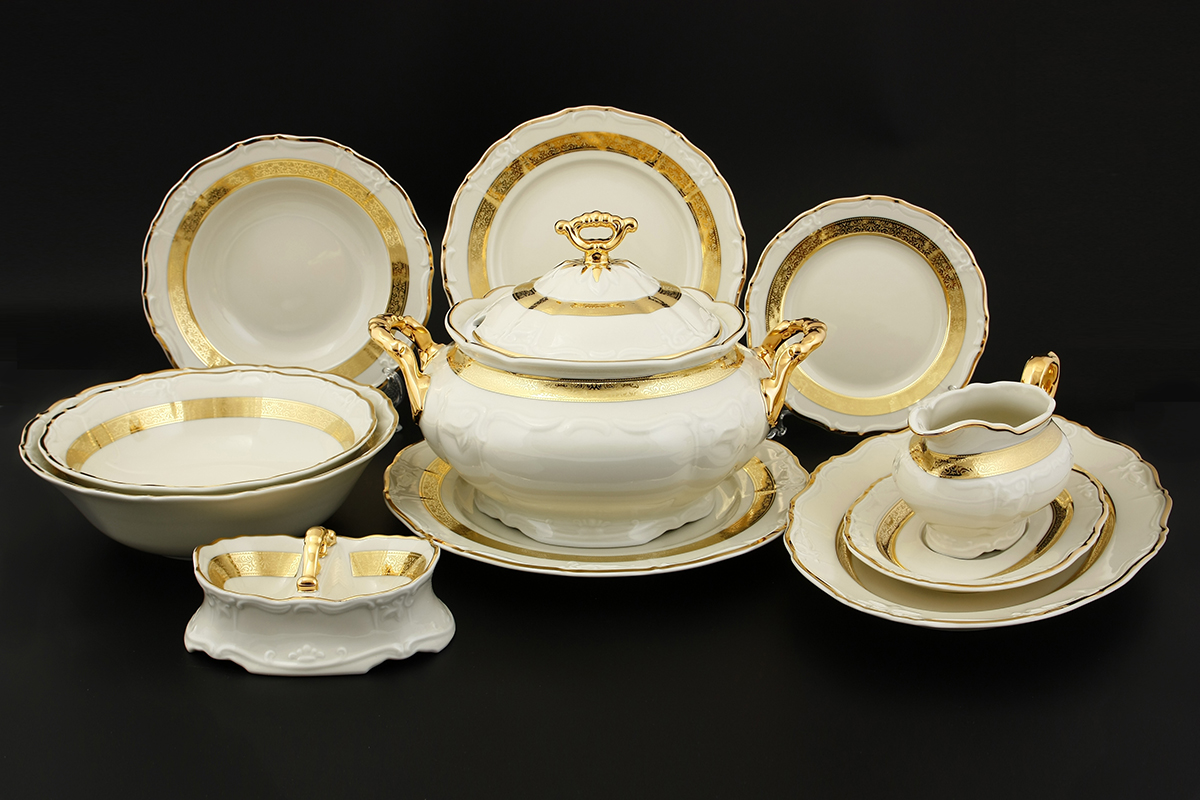 Сервиз столовый 6пер 26пр с супником и тарелками Золотая лента Слоновая кость Thun, артикул 26477