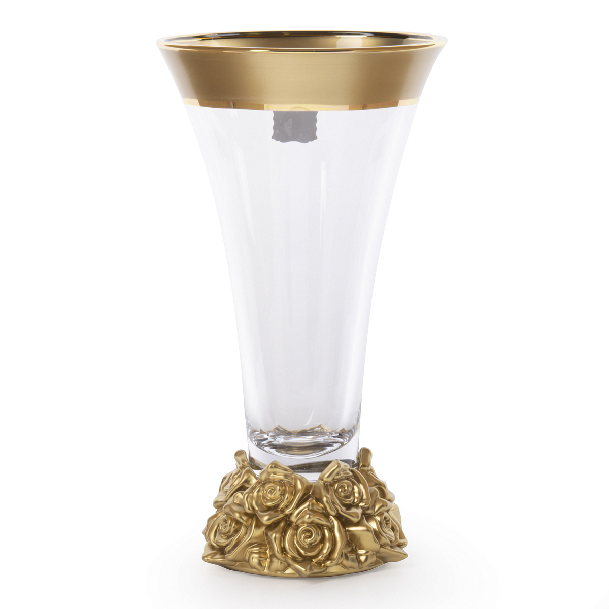 Ваза 36см на ножке Розы Матовое золото широкая полоса